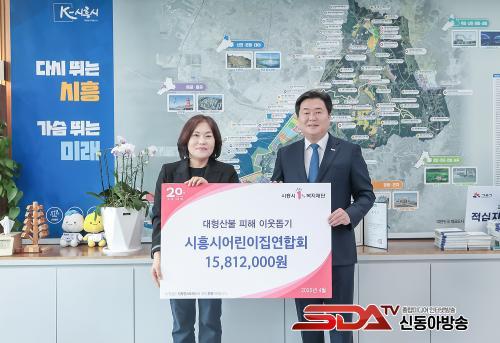[½Åµ¿¾Æ¹æ¼Û ½ÃÈï½Ã=À̽ŵ¿±âÀÚ] ½ÃÈï½Ã´Â Áö³­ 4¿ù 8ÀÏ ½ÃÈï½Ã¾î¸°ÀÌÁý¿¬ÇÕȸ¿¡¼­ »êºÒ ÇÇÇØÁö¿ªÀ» µ½±â À§ÇØ ¸ð±ÝÇÑ ¼º±Ý 15,812,000¿øÀ» ±âºÎÇÏ´Â Àü´Þ½ÄÀ» ¿­¾ú´Ù.
