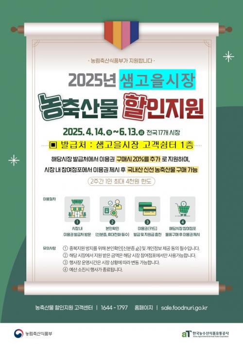´Ù¸¸, °¢ ȸÂ÷º°·Î 1Àδç ÃÖ´ë 4000¿ø±îÁö Áö¿øµÇ¸ç, Çà»ç ´ë»ó ǰ¸ñÀº ±¹³»»ê ½Å¼± ³óÃà»ê¹°¿¡ ÇÑÇÑ´Ù. ¼öÀÔ»êÀ̳ª 2Â÷ °¡°ø ³óÃà»ê¹°(Âü±â¸§, ¾ç³äÀ°, µÎºÎ, ¹Ì¿ª, ººÀ½±ú µî)Àº À̹ø Çà»ç¿¡¼­ Á¦¿ÜµÈ´Ù.