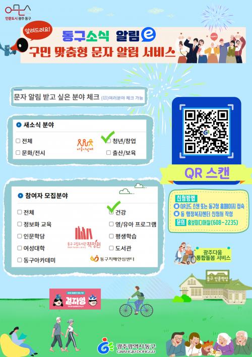 ¼ºñ½º ½ÅûÀº °ÅÁÖÁö °¢ µ¿ ÇàÁ¤º¹Áö¼¾ÅÍ ¹æ¹® ¶Ç´Â µ¿±¸Ã» ´©¸®Áý Á¢¼ÓÀ» ÅëÇØ °£ÆíÇÏ°Ô °¡´ÉÇÏ¸ç ½Åû ÀÌÈÄ¿¡´Â °ü½É ºÐ¾ß¿¡ ´ëÇÑ °ü·Ã ¼Ò½ÄÀ» ¹®ÀÚ·Î ºü¸£°Ô ¹Þ¾Æº¼ ¼ö ÀÖ´Ù. ±âŸ ±Ã±ÝÇÑ »çÇ×Àº È«º¸¹Ìµð¾î½Ç Á¤º¸Åë½ÅÆÀ(¢Ï062-608-2235)À¸·Î ¹®ÀÇÇÏ¸é µÈ´Ù.