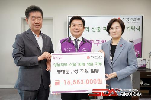 [½Åµ¿¾Æ¹æ¼Û µ¿´ë¹®±¸=À̽ŵ¿±âÀÚ] ¼­¿ï µ¿´ë¹®±¸´Â ¿µ³²±Ç ´ëÇü »êºÒ ÇÇÇØ ÁÖ¹ÎÀ» µ½±â À§ÇØ Á÷¿øµéÀÌ ¸ð±ÝÇÑ ¼º±Ý 16,583,000¿øÀ» »çȸº¹Áö°øµ¿¸ð±Ýȸ ¼­¿ïƯº°½Ã Áöȸ¿¡ ±âŹÇß´Ù°í 11ÀÏ ¹àÇû´Ù.