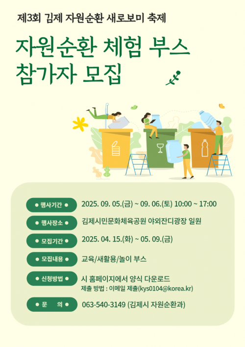 Á¤¼ºÁÖ ±èÁ¦½ÃÀåÀº ¡°½Ã¹ÎÀÌ ÇÔ²² Âü¿©ÇÏ¸ç ¸¸µé¾î°¡´Â ģȯ°æ ÃàÁ¦ÀÎ ¸¸Å, ´Ù¾çÇÑ ÀÚ¿ø¼øÈ¯ ÇÁ·Î±×·¥ÀÌ ±¸¼ºµÉ ¼ö ÀÖµµ·Ï ±³À°¡¤»õȰ¿ë¡¤³îÀÌ °ü·Ã ºÎ½º ¸ðÁý¿¡ ¸¹Àº °ü½É°ú Âü¿©¸¦ ºÎŹÇÑ´Ù.¡±°í ¸»Çß´Ù.
