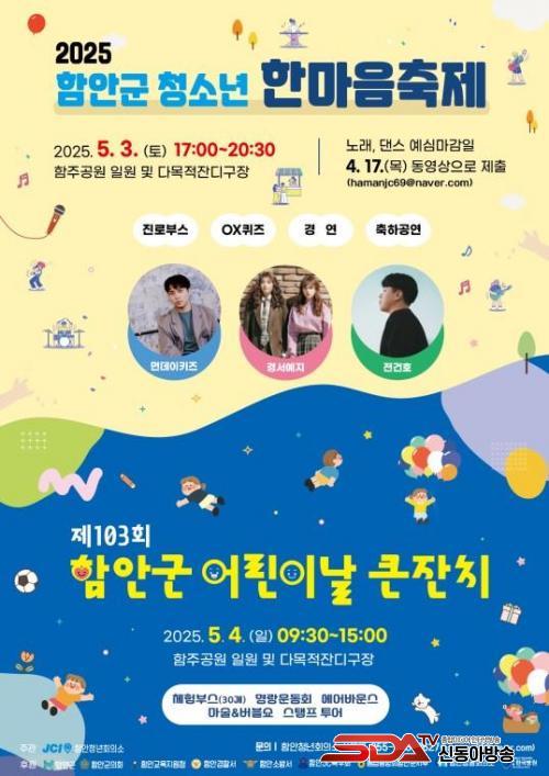 ¸ÕÀú, 5¿ù 3ÀÏ(Åä) ¿ÀÈÄ 4½Ã 30ºÐºÎÅÍ Àú³á 8½Ã±îÁö ¿¸®´Â ¡®2025³â û¼Ò³â ÇѸ¶À½ÃàÁ¦¡¯¿¡´Â û¼Ò³â µ¿¾Æ¸®ÀÇ ³ë·¡¿Í ´í½º °æ¿¬À» ºñ·ÔÇØ OX ÄûÁî À̺¥Æ®, üÇèºÎ½º µîÀÌ ¿î¿µµÈ´Ù. ƯÈ÷ °¡¼ö ¡®°æ¼¿¹Áö¡¯, ¡®¸Õµ¥ÀÌŰÁ µîÀÇ ÃàÇϰø¿¬ÀÌ ¿¹Á¤µÅ ÀÖ¾î ÃàÁ¦ÀÇ ¿±â¸¦ ´õÇÒ ¿¹Á¤ÀÌ´Ù.