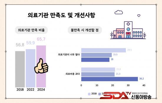 ȯ°æ ¹× ÀÇ·á ¼­ºñ½º¿¡ ´ëÇÑ ¸¸Á·µµ´Â Àü¹ÝÀûÀ¸·Î °³¼±µÈ °ÍÀ¸·Î ³ªÅ¸³µ´Ù. ³ìÁöȯ°æ(ÀÚ¿¬°æ°ü ¹× °ø¿ø, ³ìÁö µî) ¸¸Á·µµ´Â 57.8%·Î 2022³â ´ëºñ »ó½ÂÇßÀ¸¸ç, ´ë±âÁú(47.6%)°ú ¼öÁú(45.5%) ¸¸Á·µµµµ °¢°¢ 2.1%Æ÷ÀÎÆ®, 5.6%Æ÷ÀÎÆ® Áõ°¡Çß´Ù. ÀÇ·á¼­ºñ½º¿¡ ´ëÇØ¼­´Â Àüü ÀÀ´äÀÚÀÇ 65.7%°¡ ¸¸Á·ÇÑ´Ù°í ¹àÇû°í, ¡®ÀÇ·áºñ °ú´Ù¡¯(36.2%)°¡ °¡Àå Å« ºÒ¸¸ ¿äÀÎÀ̾ú´Ù. ¹Ý¸é ¡®ÀÇ·á±â°ü Á¢±Ù¼º¡¯¿¡ ´ëÇÑ ºÒ¸¸Àº 2018³â 28.5%¿¡¼­ 2024³â 18.0%·Î °¨¼ÒÇØ, ÃÖ±Ù ÀÇ·á±â°ü ¼ö Áõ°¡°¡ ±àÁ¤Àû È¿°ú¸¦ ³º°í ÀÖ´Â °ÍÀ¸·Î ºÐ¼®µÆ´Ù.
