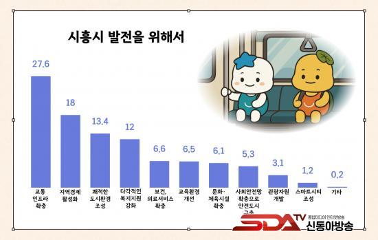 ½ÃÈï½Ã ¹ßÀüÀ» À§ÇÑ ÃÖ¿ì¼± °úÁ¦·Î´Â ¡®±³Åë ÀÎÇÁ¶ó È®Ãæ¡¯(27.6%)ÀÌ ²ÅÇû´Ù. ÀÌ¿¡ ½Ã´Â ¼­Çؼ± ¿¬Àå, ½Å¾È»ê¼±, °æ°­¼± µî ±¤¿ªÃ¶µµ °³ÅëÀ» ÅëÇØ ½Ã¹Î ±³ÅëÆíÀÇ ÁõÁø°ú µµ½Ã ±ÕÇü ¹ßÀü¿¡ ¹ÚÂ÷¸¦ °¡Çϰí ÀÖ´Ù. ¾Æ¿ï·¯ Áö¿ª ³» ´ëÁß±³Åë ü°è °³¼±À» º´Çà ÃßÁøÇØ ±³Åë ºÒÆí ÇØ¼Ò¿¡µµ ¼Óµµ¸¦ ³¾ °èȹÀÌ´Ù.