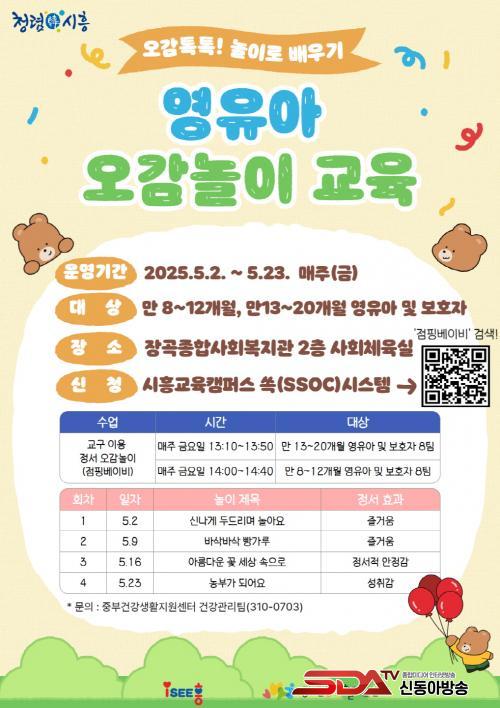 À̹ø ±³À°Àº ¸¸ 8~12°³¿ù, 13°³¿ù~20°³¿ù ¿µÀ¯¾Æ¿Í º¸È£ÀÚ¸¦ ´ë»óÀ¸·Î Àå°îÁ¾ÇÕ»çȸº¹Áö°ü 2Ãþ »çȸüÀ°½Ç¿¡¼ ÁøÇàµÈ´Ù. ȸÂ÷º°·Î 8ÆÀ¾¿ ¸ðÁýÇϸç, ½ÃÈï±³À°Ä·ÆÛ½º ¡®½ï(SSOC)¡¯À» ÅëÇØ 4¿ù 15ÀϺÎÅÍ ±³À°À» ½ÅûÇÒ ¼ö ÀÖ´Ù. ¶ÇÇÑ, ½Åû ÀοøÀÌ ¸¶°¨µÇ¸é ´ë±â ½Åûµµ °¡´ÉÇÏ´Ù.