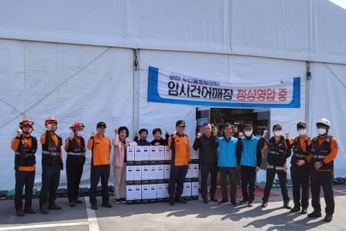 °£´ãȸ°¡ ³¡³ ÈÄ ¼Ò¹æ¼ ÃøÀº Àӽà °Ç¾î ¸ÅÀå Á¡Æ÷¿¡ 30°³ÀÇ ¼öµ¿½Ä ¼Òȱ⸦ º¸±ÞÇÏ´Â ÇÑÆí, »óÀεé°ú Á÷¿øµé¿¡°Ô ¼Ò¹æ¾ÈÀü±³À°°ú ÈÀç ¿¹¹æ ±³À°µµ ÇÔ²² Çß´Ù.