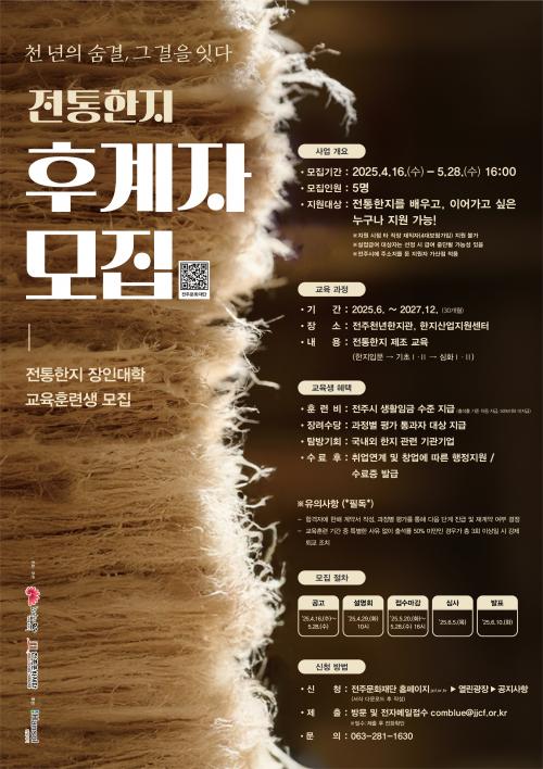ÀÌ¿Í °ü·Ã ½Ã¿Í ÀüÁÖ¹®ÈÀç´ÜÀº ¿À´Â 5¿ù 28ÀÏ ¿ÀÈÄ 4½Ã±îÁö ÀüÅëÇÑÁö ÀåÀδëÇÐ Áö¿øÀÚ¸¦ °ø°³ ¸ðÁýÇÑ´Ù. ¼·ù ¹× ¸éÁ¢ ½É»ç¸¦ °ÅÃÄ ¿À´Â 6¿ù ÇÕ°ÝÀÚ¸¦ ¼±Á¤Çϰí, ±³À°»ýµéÀº 6¿ù Áß¼øºÎÅÍ º»°ÝÀûÀ¸·Î ÀüÅëÇÑÁö ÀåÀÎÀ» ÇâÇÑ Ã¹°ÉÀ½À» ³»µó°Ô µÈ´Ù.