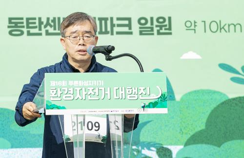 Á¶½Â¹® ȼºÆ¯·Ê½Ã Á¦2ºÎ½ÃÀåÀº ȯ¿µ»ç¸¦ ÅëÇØ ¡°È¯°æÀÚÀü°Å ´ëÇàÁøÀº ´Ü¼øÇÑ Ã¼À°Çà»ç°¡ ¾Æ´Ñ ±âÈÄ À§±â¿¡ ´ëÀÀÇϰí Áö¼Ó °¡´ÉÇÑ µµ½Ã¸¦ ¸¸µé±â À§ÇÑ ½Ã¹Î ½Çõ Ä·ÆäÀΡ±À̶ó¸ç ¡°ÀÚÀü°Å¸¦ Ÿ¸ç ´À³¢´Â Áñ°Å¿ò°ú ÇÔ²², ÀÚ¿¬À» ¾Æ³¢´Â ¸¶À½µµ ½ÇÃµÇØÁÖ½Ã±æ ¹Ù¶õ´Ù¡±°í ¸»Çß´Ù.