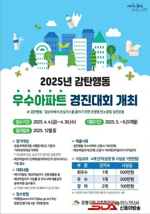 ÃÖÁ¾ °á°ú´Â ¿À´Â 12¿ù Áß ÀºÆò±¸ ´©¸®ÁýÀ» ÅëÇØ ¹ßÇ¥µÉ ¿¹Á¤À̸ç, ½Ã»ó±ÝÀº ÃÑ 1õ¸¸ ¿øÀ¸·Î ÃÖ¿ì¼ö 1°³ ´ÜÁö, 500¸¸ ¿ø, ¿ì¼ö 1°³ ´ÜÁö, 300¸¸ ¿ø, Àå·Á 2°³ ´ÜÁö, °¢ 100¸¸ ¿øÀÌ´Ù. ½Ã»ó±ÝÀº ¾ÆÆÄÆ®ÀÇ ¿¡³ÊÁö Àý¾à°ú ź¼ÒÁ߸³ »ç¾÷¿¡ ÇÑÇØ »ç¿ëÇÒ ¼ö ÀÖÀ¸¸ç, ÀϺδ ÁֹΠÆ÷»ó±ÝÀ¸·Î Ȱ¿ë °¡´ÉÇÏ´Ù.