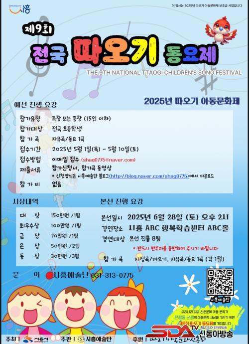 ¿ÃÇØ 9ȸ°¸¦ ¸ÂÀÌÇÑ µû¿À±â¾Æµ¿µ¿¿äÁ¦´Â ½ÃÈï½Ã°¡ ÁÖÃÖÇÏ°í ½Ãȼú´ÜÀÌ ÁÖ°üÇÏ´Â Àü±¹ ±Ô¸ðÀÇ ¾Æµ¿µ¿¿ä °æ¿¬´ëȸ´Ù. ¾Æµ¿¹®Çа¡ (°í)ÇÑÁ¤µ¿ ½ÃÀÎÀÇ ¡®¾Æµ¿»ç¶û, ¹ÎÁ·»ç¶û, ¿ì¸®¸»»ç¶û¡¯ Á¤½ÅÀ» ±â¸®±â À§ÇØ ¸Å³â ¿¸®°í ÀÖÀ¸¸ç ¾Æµ¿ÀÇ ¼ø¼öÇÑ ¸¶À½À» Á¸ÁßÇÏ°í ¹®È Ȱµ¿¿¡ Âü¿©ÇÒ ±âȸ¸¦ Á¦°øÇϱâ À§ÇØ ¸¶·ÃµÆ´Ù.