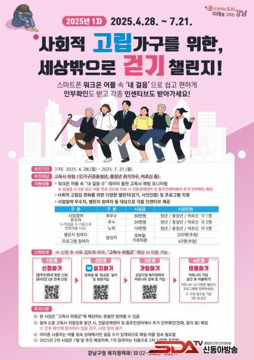 ´ë»óÀÚÀÇ ÇÏ·ç °ÉÀ½ ¼ö°¡ 0º¸À̰ųª, ÀÌÆ²°£ 200º¸ ÀÌÇÏ·Î ÃøÁ¤µÇ¸é ÀÚµ¿À¸·Î °üÁ¦¼¾ÅÍ¿¡¼ ¾ÈºÎ Àüȸ¦ ½Ç½ÃÇÑ´Ù. ÀÌ¿Í ÇÔ²² Âü¿©ÀÚÀÇ »çȸÀû °í¸³°¨ ¿Ïȸ¦ À§ÇÑ ´Ù¾çÇÑ ¸ÂÃãÇü ÇÁ·Î±×·¥°ú ´Ü±â °È±â 縰Áö¸¦ ¿î¿µÇϸç, Ȱµ¿ Àμ¾Æ¼ºêµµ Á¦°øÇÑ´Ù. Âü°¡ÀÚ Áß ¿ì¼ö Ȱµ¿ÀÚ 48¸íÀ» ¼±Á¤ÇØ ¿¬·É´ëº°·Î ÃÖ¿ì¼ö(30¸¸ ¿ø), ¿ì¼ö(20¸¸ ¿ø), ³ë·Â(10¸¸ ¿ø) µî ½Ã»ó±ÝÀ» Áö±ÞÇÒ ¿¹Á¤ÀÌ´Ù.