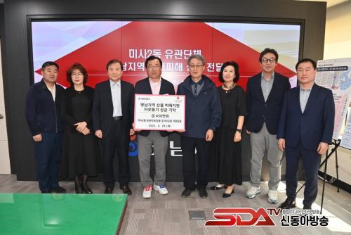 À̹ø¿¡ ¸¶·ÃÇÑ ¼º±ÝÀº ¹Ì»ç2µ¿ 7°³ À¯°ü´Üü(ÅëÀå´Ü, ÁÖ¹ÎÀÚġȸ, Áö¿ª»çȸº¸ÀåÇùÀÇü, üÀ°È¸, ¹Ù¸£°Ô»ì±â¿îµ¿ ÇùÀÇȸ, ¹æÀ§ÇùÀÇȸ, »õ¸¶À»ºÎ³àȸ) ¹× ¹Ì»ç2µ¿ Á÷¿øµéÀÌ ¿µ³²Áö¿ª »êºÒ ÇÇÇØ º¹±¸¸¦ À§ÇØ ½á´Þ¶ó¸ç ÀÚ¹ßÀûÀ¸·Î ¸ð±ÝÇÏ¿© ÃÑ 450¸¸¿øÀÌ ¸ðÀÎ °ÍÀÌ´Ù.