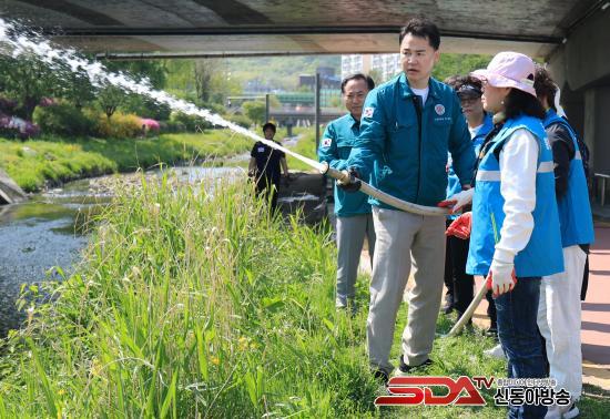 ¿À¾ð¼® µµºÀ±¸Ã»ÀåÀÌ ¹° ÆßÇÁ¸¦ ÀÛµ¿Çϰí ÀÖ´Ù(2025. 4. 28. µµºÀõ µÐÄ¡)