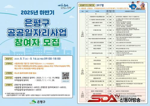 ¼±¹ßµÈ Âü¿©ÀÚ´Â ÀºÆò±¸Ã» ¶Ç´Â °ü³» 16°³ µ¿Áֹμ¾ÅÍ µî¿¡¼ ¿À´Â 7¿ù 1ÀϺÎÅÍ ±Ù¹«ÇÏ°Ô µÈ´Ù. ¼¿ïµ¿Çà ÀÏÀÚ¸®, ÀºÆòµçµç ÀÏÀÚ¸®´Â 12¿ù 19ÀϱîÁö ±Ù¹«Çϰí Áö¿ª°øµ¿Ã¼ ÀÏÀÚ¸®´Â 11¿ù 28ÀϱîÁö ±Ù¹«ÇÑ´Ù. ±Ù¹«ÀÚ¿¡°Ô´Â 2025³â ÃÖÀúÀÓ±ÝÀÎ ½Ã°£´ç 10,030¿øÀÌ Áö±ÞµÇ°í 4´ë º¸Çè °¡ÀÔ, ÁÖÈÞ¼ö´ç, ¿ùÂ÷¼ö´ç, °£½Äºñ µî °¢Á¾ º¹¸®ÈÄ»ýÀÌ Áö¿øµÈ´Ù.