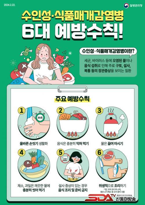 ¼öÀμº¤ý½Äǰ¸Å°³°¨¿°º´Àº º´¿ø¼º ¼¼±Õ, ¹ÙÀÌ·¯½º, ¿øÃæ¿¡ ¿À¿°µÈ ¹° ¶Ç´Â ½Äǰ ¼·Ãë·Î ÀÎÇØ ±¸Åä, ¼³»ç, º¹Åë µîÀÇ Àå°ü Áõ»óÀ» À¯¹ßÇÑ´Ù. À̸¦ ¿¹¹æÇϱâ À§Çؼ´Â ¿Ã¹Ù¸¥ ¼Õ ¾Ä±â »ýȰÈ, À½½ÄÀº ÃæºÐÈ÷ ÀÍÇô ¸Ô±â, ¹°Àº ²ú¿© ¸¶½Ã±â, ä¼Ò, °úÀÏÀº ±ú²ýÇÑ ¹°¿¡ ÃæºÐÈ÷ ¾Ä¾î ¸Ô±â, ¼³»ç Áõ»óÀÌ ÀÖ´Â °æ¿ì À½½Ä Á¶¸® ¹× Áغñ ±ÝÁö, À§»ýÀûÀ¸·Î Á¶¸®Çϱ⠵îÀÇ ¼öÄ¢À» ÁؼöÇØ¾ß ÇÑ´Ù.