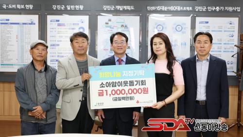 ¼Ò¾Æ¾ÏÀÌ¿ôµ½±âȸ, °­Áø±º¿¡ ÁöÁ¤±âŹ±Ý 100¸¸ ¿ø Àü´Þ