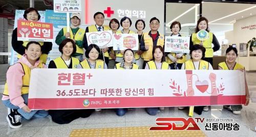 IWPG ¸ñÆ÷ÁöºÎ ȸ¿øµé°ú Á÷¿øµéÀº ÇåÇ÷À» ÁÖÁ¦·Î ÇÑ Çö¼ö¸·À» µé°í °Å¸®¿¡¼ ½Ã¹Îµé¿¡°Ô ÇåÇ÷ÀÇ Çʿ伺À» ¾Ë¸®´Â È«º¸ Ȱµ¿À» ÆîÃÆ´Ù. À̵éÀº "ÇåÇ÷Àº °Ç°ÇÑ ¼ºÀÎÀ̶ó¸é ´©±¸³ª Âü¿©ÇÒ ¼ö ÀÖ´Â »ý¸í ³ª´® Ȱµ¿"À̶ó¸ç "ÇÑ ¹øÀÇ ÇåÇ÷·Î ÃÖ´ë ¼¼ ¸íÀÇ »ý¸íÀ» ±¸ÇÒ ¼ö ÀÖ´Ù"°í ¸Þ½ÃÁö¸¦ ÀüÇß´Ù.