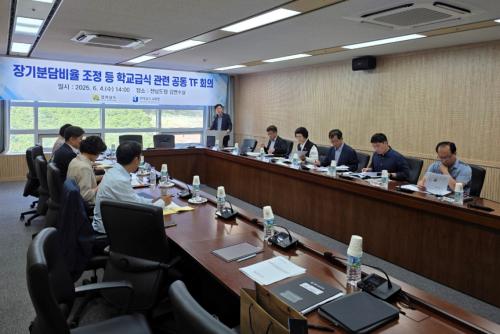 ȸÀÇ¿¡´Â °øµ¿ TF À§¿ø 8¸íÀÌ Âü¼®ÇÏ¿´À¸¸ç, ÁÖ¿ä ¾È°ÇÀ¸·Î ¡ã ¹«»ó±Þ½Ä ½Äǰºñ Àå±â ºÐ´ãºñÀ² Á¶Á¤ ¹æ¾È ¡ã ģȯ°æ ³ó»ê¹° Áö¿ø»ç¾÷ °ø±Þ ¹æ½Ä °³¼± ¹æ¾È ¡ã ÀÛÀºÇб³ ±Þ½Ä¿î¿µ °³¼± ¹æ¾È µîÀÌ´Ù.