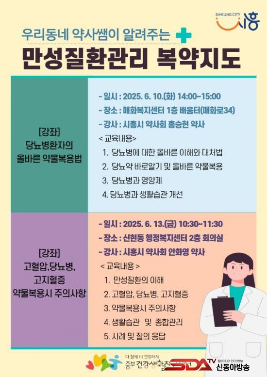À̹ø °Á´ ½ÃÈï½Ã ¾à»çȸ ¼Ò¼Ó ¾à»ç°¡ Á÷Á¢ °ÀÇÇϸç, ´ç´¢º´, °íÇ÷¾Ð, °íÁöÇ÷Áõ µî ´ëÇ¥ÀûÀÎ ¸¸¼ºÁúȯ¿¡ ´ëÇÑ ¿Ã¹Ù¸¥ ¾à¹° º¹¿ë¹ý°ú »ýȰ½À°ü°³¼± ¹æ¹ýÀ» ¾Ë±â ½±°Ô Àü´ÞÇÒ ¿¹Á¤ÀÌ´Ù.