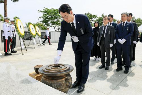 À̳¯ Ãß³ä½Ä¿¡´Â Á¤¸í±Ù ȼºÆ¯·Ê½ÃÀåÀ» ºñ·ÔÇÑ º¸ÈÆ´ÜüÀå°ú º¸Èư¡Á·, ±¹È¸ÀÇ¿ø, µµ¡¤½ÃÀÇ¿ø, ½Ã¹Î µî 350¿© ¸íÀÌ Âü¼®ÇØ, ±¹°¡À¯°øÀÚÀÇ ±¹°¡¸¦ À§ÇÑ Çå½Å°ú ¿ë±â¿¡ ´ëÇÑ °¨»ç¸¦ Ç¥Çß´Ù.