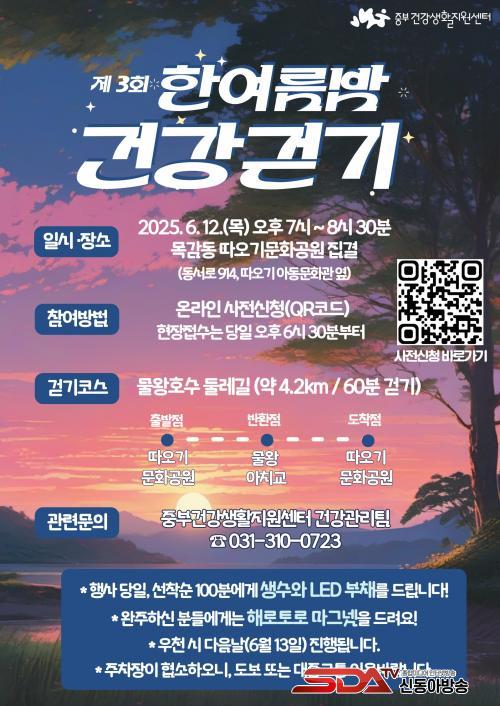 [½Åµ¿¾Æ¹æ¼Û ½ÃÈï½Ã=À̽ŵ¿±âÀÚ] ½ÃÈï½Ã Áߺΰǰ­»ýȰÁö¿ø¼¾ÅÍ´Â 6¿ù 12ÀÏ ¿ÀÈÄ 7½ÃºÎÅÍ 8½Ã 30ºÐ±îÁö, ¸ñ°¨µ¿ µû¿À±â¹®È­°ø¿ø(µ¿¼­·Î 914)¿¡¼­ Á¦3ȸ ÇÑ ¿©¸§¹ã °Ç°­°È±â Çà»ç¸¦ °³ÃÖÇÑ´Ù. À̹ø Çà»ç´Â ¹«´õ¿î ¿©¸§Ã¶ ½ÅüȰµ¿ÀÌ ÁÙ¾îµé±â ½¬¿î ½Ã¹Îµé¿¡°Ô ÀÚ¿¬ ¼Ó °È±â °æÇèÀ» Á¦°øÇϰí, °È±â ½ÇõÀ» Àå·ÁÇϱâ À§ÇØ ¸¶·ÃµÆ´Ù.