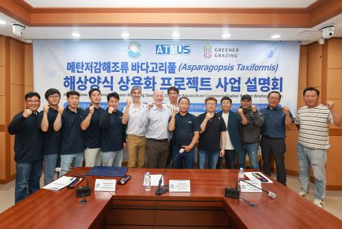 [½Åµ¿¾Æ¹æ¼Û=À̺´½Ä±âÀÚ] ¿Ïµµ±ºÀº Áö³­ 6¿ù 5ÀÏ ÇØ¾ç ºí·çÅ×Å© ½ºÅ¸Æ®¾÷ AT4US Korea(´ëÇ¥ À̹οµ, ±¸ ·¹µå¾¾À§µå·¦½º ÄÚ¸®¾Æ)¿Í ±Û·Î¹ú ¹Ù´Ù°í¸®Ç® ¿¬±¸ ±â¾÷ Greener Grazing LLC(´ëÇ¥ÀÌ»ç Josh Goldman)¿Í ÅäÁ¾ ¹Ù´Ù°í¸®Ç®(Asparagopsis taxiformis)À» Ȱ¿ëÇÑ ¾ç½Ä »ê¾÷ ¹ßÀü°ú Ãà»ê ¸Þź Àú°¨ ź¼Ò Á߸³ ½ÇÇöÀ» À§ÇÑ 3ÀÚ °£ ¾÷¹« Çù¾àÀ» ü°áÇß´Ù.