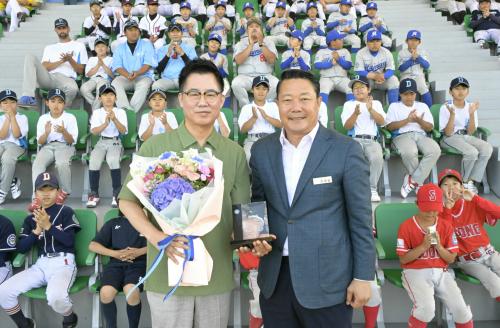À̳¯ ÃÖ¿µÀÏ ±º¼ö´Â Á÷Á¢ ÀÌ»ó±Ù ȸÀå¿¡°Ô °¨»çÆÐ¸¦ Àü´ÞÇϸç, 10¿© ³â°£ ¼øÃ¢±º¿¡¼ À¯¼Ò³â ¾ß±¸´ëȸ¸¦ ²ÙÁØÈ÷ °³ÃÖÇØ Áö¿ª°æÁ¦ Ȱ¼ºÈ¿¡ ±â¿©ÇÑ °ø·Î¿¡ ±íÀº °¨»çÀÇ ¶æÀ» ÀüÇß´Ù.
