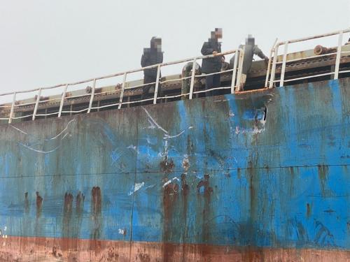 »çÁø=Ãæµ¹·Î ÀÎÇÏ¿© È­¹°¼± BÈ£ÀÇ ¼±Ã¼ »óºÎ¿¡ 30cm°¡·®ÀÇ ÆÄ°øÀÌ ¹ß »ýÇß´Ù.