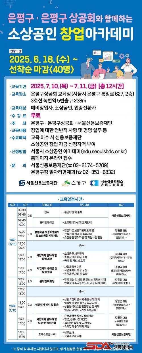 [½Åµ¿¾Æ¹æ¼Û ÀºÆò±¸=À̽ŵ¿±âÀÚ] ¼­¿ï ÀºÆò±¸´Â ¿À´Â 18ÀϺÎÅÍ ¿¹ºñ â¾÷ÀÚ, ¼Ò»ó°øÀÎ, ¾÷Á¾ ÀüȯÀÚ¸¦ ´ë»óÀ¸·Î ¡®2025³â ¼Ò»ó°øÀΠâ¾÷¾ÆÄ«µ¥¹Ì¡¯ ½ÅûÀ» ¹Þ´Â´Ù°í ¹àÇû´Ù.