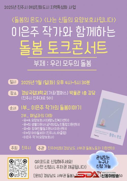 [½Åµ¿¾Æ¹æ¼Û °æ³²ÁøÁÖ=³²±Ã¿µ±â±âÀÚ] ÁøÁֽô ¿©¼ºÄ£È­µµ½Ã Áö¿ªÆ¯¼ºÈ­ »ç¾÷ÀÇ Çϳª·Î ¿À´Â 7¿ù 1ÀÏ ¿ÀÈÄ 4½Ã, °æ»ó±¹¸³´ëÇб³ ¹Ú¹°°ü 1Ãþ °­´ç¿¡¼­ ¡®ÀÌÀºÁÖ ÀÛ°¡¿Í ÇÔ²²ÇÏ´Â µ¹º½ ÅäÅ©Äܼ­Æ®¡¯¸¦ °³ÃÖÇÑ´Ù.
