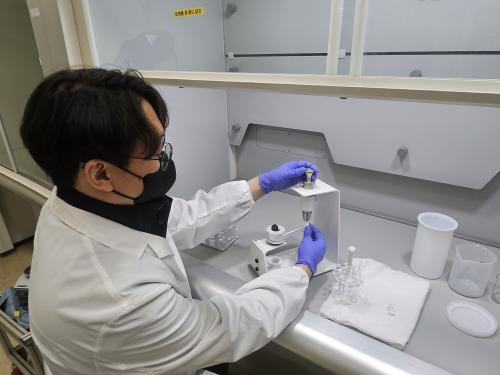 »çÁø=È­¼º½Ã ³ó¾÷±â¼ú¼¾ÅÍ ´ã´çÀÚ°¡ ³ó»ê¹°¾ÈÀüºÐ¼®¿¬±¸½Ç¿¡¼­ Åä¾çÁß±Ý¼Ó ºÐ¼®À» À§ÇÑ Àü󸮸¦ Çϰí ÀÖ´Ù