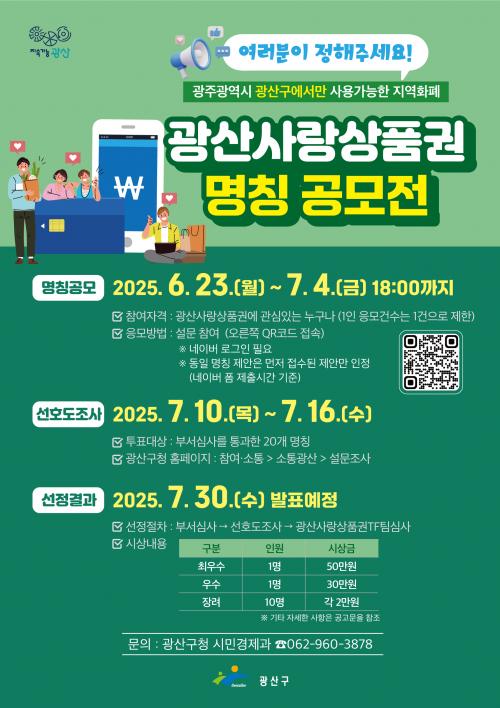 ±¤»ê±¸´Â ¡®±¤»ê»ç¶û»óǰ±Ç¡¯¿¡ ´ëÇÑ ½Ã¹ÎÀÇ °ü½ÉÀ» ³ôÀ̰í, Ȱ¼ºÈ­ ±â¹ÝÀ» ´ÙÁö±â À§ÇØ 23ÀϺÎÅÍ 7¿ù 4ÀÏ ¿ÀÈÄ 6½Ã±îÁö Àü ±¹¹ÎÀ» ´ë»óÀ¸·Î ¸íĪ °ø¸ðÀüÀ» ÁøÇàÇÑ´Ù.
