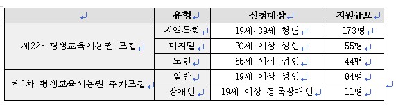 À̹ø Á¦2Â÷ ¸ðÁýÀº Áö¿ªÆ¯È, µðÁöÅÐ, ³ëÀÎ À¯ÇüÀ¸·Î ±¸ºÐÇØ ÁøÇàµÇ¸ç, Áö³ 1Â÷ ¸ðÁý ´ç½Ã ÀÜ¿© Àοø¿¡ ´ëÇÑ Ãß°¡¸ðÁýµµ ÇÔ²² ÀÌ·ïÁø´Ù. Ãß°¡¸ðÁýÀº ÀϹÝ, Àå¾ÖÀÎ À¯ÇüÀ¸·Î ½ÅûÇÒ ¼ö ÀÖ´Ù.