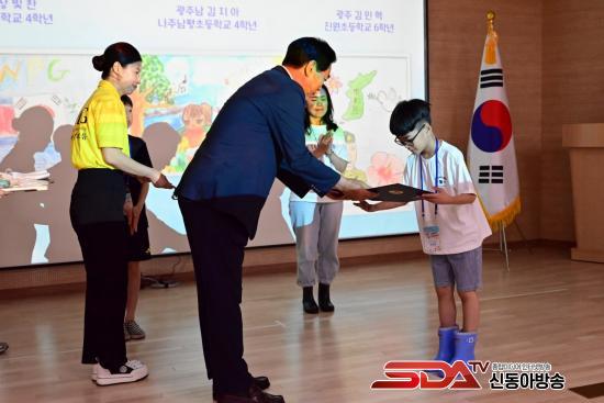 À̹ø ´ëȸ´Â ÀüÀï°ú °¥µîÀÌ »óÁ¸ÇÏ´Â ±¹Á¦»çȸ ¼Ó¿¡¼ ¾î¸°ÀÌ¡¤Ã»¼Ò³âÀÌ ÆòÈÀÇ Àǹ̸¦ µÇ»õ±â°í À̸¦ âÀÇÀûÀ¸·Î Ç¥ÇöÇÒ ¼ö ÀÖµµ·Ï ±âȹµÆ´Ù. ±¤ÁÖÁö¿ª ÃÊÁß°í ÇлýµéÀÇ ÆòÈ¿¡ ´ëÇÑ ¿°¿øÀÌ ´ã±ä ¼ö»óÀÛ 57Á¡ÀÌ ÇöÀå¿¡ Àü½ÃµÆ´Ù.