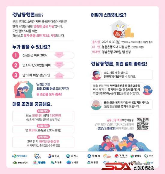 2025³âºÎÅÍ 2027³â±îÁö À̾îÁú °æ³²µ¿Çà·ÐÀÇ »ç¾÷ ´ë»óÀº ½Å¿ëµî±ÞÀÌ ÇÏÀ§ 20%ÀÌ¸ç ¿¬¼ÒµæÀÌ 3,500¸¸¿ø ÀÌÇÏÀÎ 19¼¼ ÀÌ»óÀÇ Àú½Å¿ë, Àú¼Òµæ µµ¹ÎÀÌ´Ù. °³Àδç ÃÖ´ë 150¸¸¿øÀ» Çѵµ·Î ¿¬ 8~9% ±Ý¸®·Î Áö¿øÇÏ¸ç ½Åû ½ÃÁ¡À¸·ÎºÎÅÍ 48½Ã°£ À̳» ±ä±Þ ´ëÃâÀÌ ½ÇÇàµÈ´Ù.