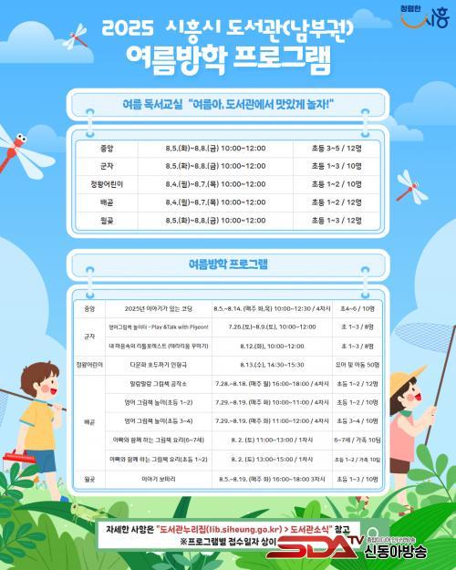 [½Åµ¿¾Æ¹æ¼Û ½ÃÈï½Ã=À̽ŵ¿±âÀÚ] ½ÃÈï½ÃÁß¾Óµµ¼­°üÀ» ºñ·ÔÇÑ 5°³ ³²ºÎ±Ç °ø°øµµ¼­°ü(Áß¾Ó¤ý±ºÀÚ¤ýÁ¤¿Õ¾î¸°À̤ý¹è°ð¤ý¿ù°ù)¿¡¼­ 7¿ù 26ÀϺÎÅÍ 8¿ù 19ÀϱîÁö 2025³â ¿©¸§¹æÇÐ µ¶¼­±³½Ç ¹× ¿©¸§¹æÇÐ ÇÁ·Î±×·¥À» ¿î¿µÇÑ´Ù.