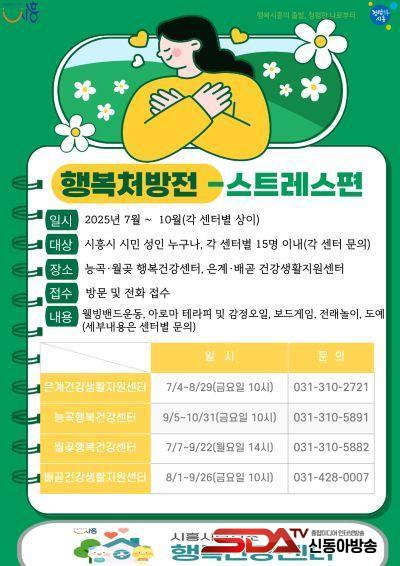 [½Åµ¿¾Æ¹æ¼Û ½ÃÈï½Ã=À̽ŵ¿±âÀÚ] ½ÃÈï½Ã Çູ°Ç°­¼¾ÅÍ´Â Áö¿ªÁÖ¹ÎÀÇ Á¤½Å°Ç°­ ÁõÁø°ú ½ºÆ®·¹½º ¿ÏÈ­¸¦ À§ÇØ 7¿ùºÎÅÍ 10¿ù±îÁö ºÏºÎ(Àº°è), ÁߺÎ(´É°î¤ý¿ù°ù), ³²ºÎ(¹è°ð) ±Ç¿ªº°·Î ¼ºÀÎ ´ë»ó ½ºÆ®·¹½º ¿ÏÈ­ ÇÁ·Î±×·¥À» ¼øÂ÷ÀûÀ¸·Î ¿î¿µÇÑ´Ù.