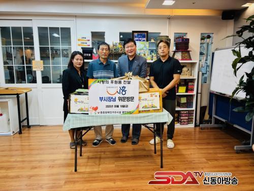 ¹Ú ºÎ½ÃÀåÀº À̳¯ ½Ä·áǰ°ú »ýÇÊǰ µî À§¹®Ç°À» Àü´ÞÇϸç ÀÔ¼ÒÀÚ¿Í Á¾»çÀڵ鿡°Ô µû¶æÇÑ Ãß¼® Àλ縦 ÀüÇϰí, ´ëÈ­¸¦ ³ª´³´Ù. ¶ÇÇÑ, ½Ã¼³ ÀÌ¿ë°ú ¿î¿µ¿¡ °ü·ÃµÈ ´Ù¾çÇÑ ÀǰßÀ» µè°í °Ý·ÁÇß´Ù. ÀÔ¼ÒÀÚ¿Í Á¾»çÀÚµéÀº ¡°Áø¼ÖÇÑ ¼ÒÅëÀÇ ±âȸ¿¡ °¨»çÇÏ´Ù¡±¶ó°í ¸»Çß´Ù.