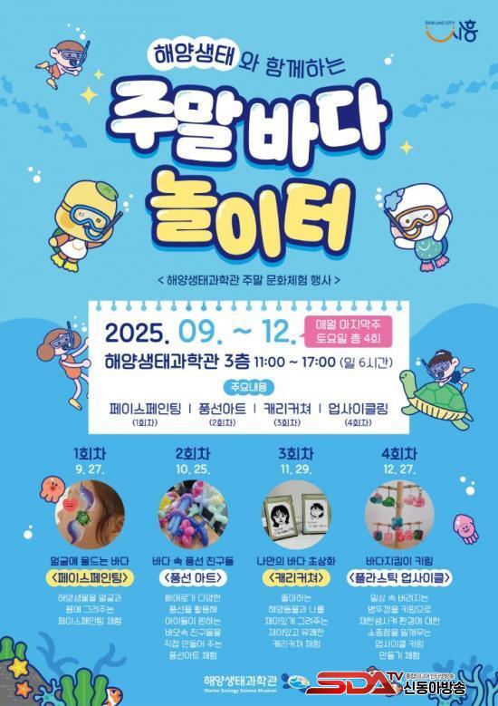 [½Åµ¿¾Æ¹æ¼Û ½ÃÈï½Ã=À̽ŵ¿±âÀÚ] ½ÃÈï½Ã´Â 9¿ùºÎÅÍ 12¿ù±îÁö ¸Å¿ù ¸¶Áö¸· ÁÖ Åä¿äÀÏ, ÇØ¾ç»ýŰúÇаü 3Ãþ ±âȹÀü½Ã½Ç¿¡¼­ ÃÑ 4ȸ¿¡ °ÉÃÄ ÁÖ¸» ¹®È­Ã¼Çè Çà»ç¸¦ ¿î¿µÇÑ´Ù.