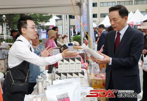 Àü±¹ 40¿© ÁöÀÚü¿Í 80¿© ³ó°¡°¡ Âü¿©ÇÑ °¡¿îµ¥ 60¿© °³ ºÎ½º¿¡¼­ Çѿ졤»ç°ú µî ¸íÀý ¼º¼öǰ ÆÇ¸ÅÇß´Ù.