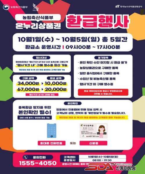 Çà»ç ±â°£ µ¿¾È ±¹³»»ê ½Å¼± ³ó¡¤Ãà»ê¹°À» ±¸¸ÅÇÑ ¼ÒºñÀÚ´Â ±¸¸Å ±Ý¾×¿¡ µû¶ó ÃÖ´ë 30% À̳»¿¡¼ 1Àδç ÃÖ´ë 2¸¸ ¿ø±îÁö ¿Â´©¸®»óǰ±ÇÀ» ȯ±Þ¹ÞÀ» ¼ö ÀÖÀ¸¸ç, ±¸¸Å±Ý¾× 3¸¸ 4õ ¿ø ÀÌ»ó 6¸¸ 7õ ¿ø ¹Ì¸¸Àº 1¸¸ ¿ø, 6¸¸ 7õ ¿ø ÀÌ»óÀº 2¸¸ ¿øÀÌ È¯±ÞµÇ°í, ¿¹»ê ¼ÒÁø ½Ã Çà»ç´Â Á¶±â Á¾·áµÉ ¼ö ÀÖ´Ù.
