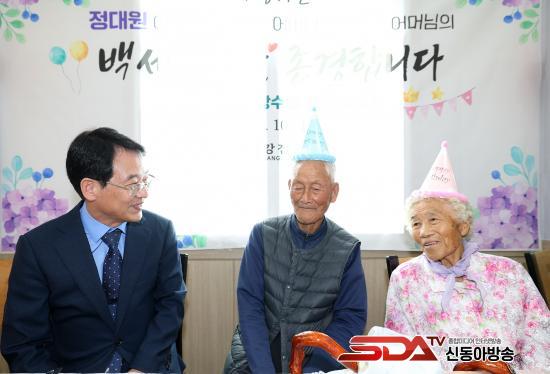 À̳¯ 100¼¼ ¾î¸£½Å²² µå¸®´Â û·ÁÀå°ú ÇÔ²² °úÀÏ¡¤ÂüÄ¡¼¼Æ® µî À§¹®Ç°À» Àü´ÞÇßÀ¸¸ç, ÄÉÀÌÅ© Ä¿ÆÃ°ú ±â³äÃÔ¿µÀ» ÅëÇØ Âü¼®ÀÚ ¸ðµÎ°¡ ¾î¸£½ÅµéÀÇ Àå¼ö¸¦ ÃàÇÏÇÏ´Â ½Ã°£À» °¡Á³´Ù.