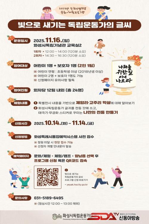È­¼ºÆ¯·Ê½Ã, È­¼º½Ãµ¶¸³¿îµ¿±â³ä°ü 2025³â ¼ø±¹¼±¿­ÀÇ ³¯ ¹®È­¡¤Ã¼Çè ÇÁ·Î±×·¥ Âü°¡ÀÚ ¸ðÁý