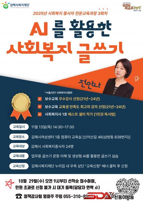 À̹ø ±³À°Àº 2025³â »çȸº¹Áö Á¾»çÀÚ Àü¹®±³À°°úÁ¤ÀÇ ¼¼ ¹øÂ° ÇÁ·Î±×·¥À¸·Î, ±èÇØ½Ã ³» »çȸº¹Áö±â°ü Á¾»çÀÚ 24¸íÀ» ´ë»óÀ¸·Î ¿î¿µµÈ´Ù.