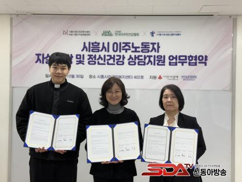 À̹ø Çù¾àÀº ÀÌÁֳ뵿ÀÚÀÇ Á¤½Å°Ç° ¹®Á¦¿Í ÀÚ»ìÀ§Çè¿¡ ¼±Á¦ÀûÀ¸·Î ´ëÀÀÇϰí, Áö¿ª»çȸ Àü¹ÝÀÇ ¾ÈÀü¸ÁÀ» °ÈÇϱâ À§ÇÑ °ÍÀ¸·Î, ½ÃÈï½Ã¿Ü±¹Àκ¹Áö¼¾Å͸¦ ºñ·ÔÇØ ½ÃÈï½ÃÀڻ쿹¹æ¼¾ÅÍ, Çѱ¹ÀÌÁֹΰǰÇùȸ À§ÇÁ·»Áî µî 3°³ ±â°üÀÇ ´ëÇ¥ÀÚ¿Í ½Ç¹«ÀÚµéÀÌ Âü¼®ÇØ ÁøÇàµÆ´Ù.