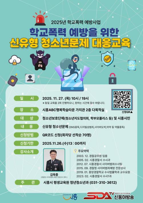 ±³À°Àº ½ÃÈï°æÂû¼ ¼Ò¼Ó »çÀ̹ö¹üÁË ¿¹¹æ Àü¹® °»ç ±è¿íÁß °æÀ§°¡ ¹®Á¦ À¯Çüº° ÁÖ¿ä »ç·Ê Áß½ÉÀ¸·Î ÁøÇàÇÑ´Ù. ÁÖ¿ä ³»¿ëÀº ¡ã»çÀ̹öµµ¹Ú ¡ãµðÁöÅÐ ¼º¹üÁË ¡ã½º¸¶Æ®Æù Áßµ¶ ¡ã¾à¹°(¸¶¾à) Áßµ¶ µî »õ·Ó°Ô ´ëµÎµÇ´Â û¼Ò³â ¹®Á¦ÀÇ À§Ç輺°ú ÀÌ¿¡ ´ëÇÑ ¿¹¹æ ¹× ´ëÀÀ ¹æ¾ÈÀÌ´Ù.