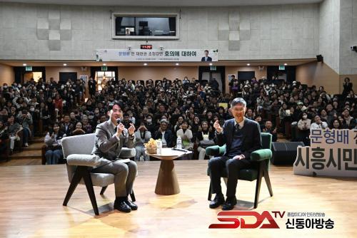 Çà»ç´Â 40ºÐÀÇ °¿¬°ú 50ºÐÀÇ ÁúÀÇÀÀ´äÀ¸·Î ±¸¼ºµÆÀ¸¸ç, ½Ã¹ÎµéÀº ´Ù¾çÇÑ Áú¹®À» ÅëÇØ °ø°¨°ú ¼ÒÅëÀÇ ÀÚ¸®¸¦ ¸¸µé¾î ³Â´Ù. ¹® Àü ÀçÆÇ°üÀº ¡°Åä·Ð°ú Áú¹®À̾߸»·Î ¹ÎÁÖ»çȸÀÇ °¡Àå °Ç°ÇÑ È£ÀÇ¡±¶ó°í °Á¶ÇÏ¸ç ½Ã¹Î ÇÑ ¸í ÇÑ ¸íÀÇ °í¹Î°ú »ý°¢¿¡ Áø½ÉÀ¸·Î ´äÇß´Ù. °ÀÇ ÈÄ ÁøÇàµÈ »çÀÎȸ¿¡´Â ÀúÀÚ¿Í Á÷Á¢ ¸¸³ª ´ëȸ¦ ³ª´©´Â ½Ã°£ÀÌ À̾îÁ® Âü¼®ÀÚµéÀÇ Å« È£ÀÀÀ» ¾ò¾ú´Ù.