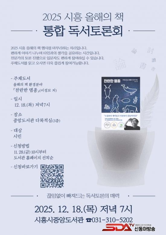 [½Åµ¿¾Æ¹æ¼Û ½ÃÈï½Ã=À̽ŵ¿±âÀÚ] ½ÃÈï½ÃÁß¾Óµµ¼­°üÀº ¿À´Â 12¿ù 18ÀÏ ¿ÀÈÄ 7½Ã Áß¾Óµµ¼­°ü 3Ãþ ´Ù¸ñÀû½Ç¿¡¼­ ȯ°æ ºÐ¾ß ¿ÃÇØÀÇ Ã¥À¸·Î ¼±Á¤µÈ ÀÌÁ¤¸ð ÀÛ°¡ÀÇ ¡¸Âù¶õÇÑ ¸êÁ¾¡¹À» ÁÖÁ¦·Î ½Ã¹Îµé°ú ÇÔ²²ÇÏ´Â ¡®2025 ½ÃÈï ¿ÃÇØÀÇ Ã¥ ÅëÇÕ µ¶¼­Åä·Ðȸ¡¯¸¦ °³ÃÖÇÑ´Ù.