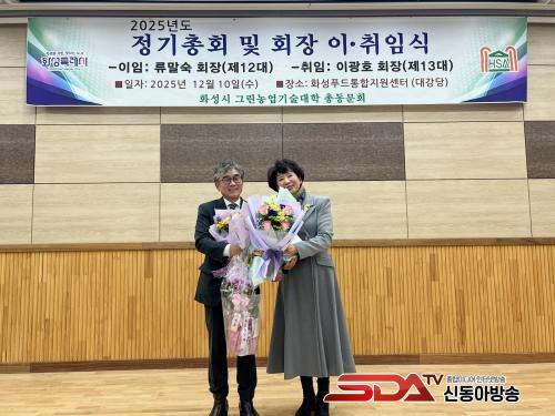 »çÁø=10ÀÏ È­¼º±×¸°³ó¾÷±â¼ú´ëÇÐ Ãѵ¿¹®È¸ Á¤±âÃÑȸ¿¡¼­ Á¦11¡¤12´ë ·ù¸»¼÷ µ¿¹®È¸ÀåÀÌ ÀÌÀÓ°ú Á¦13´ë À̱¤È£ µ¿¹®È¸ÀåÀÌ ±â³äÃÔ¿µÀ» Çϰí ÀÖ´Ù