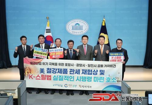 12ÀÏ ¼¿ï ±¹È¸ ¼ÒÅë°ü¿¡¼ ¿¸°¡®´çÁø¡¤Æ÷Çס¤±¤¾ç ö°µµ½Ã °øµ¿±âÀÚȸ°ß¡¯¿¡¼ ¼¼ µµ½Ã´Â ¹Ì±¹ÀÇ °íÀ² ö°Á¦Ç° °ü¼¼ ÀçÇù»ó°ú¡®K-½ºÆ¿¹ý¡¯ ½ÃÇà·É ¸¶·ÃÀ» Áß½ÉÀ¸·Î ÇÑ ¹üÁ¤ºÎ Â÷¿øÀÇ Æ¯´Ü ´ëÃ¥À» ¿ä±¸Çß´Ù. À̳¯ ±âÀÚȸ°ß¿¡´Â ´çÁø¡¤Æ÷Çס¤±¤¾ç 3°³ µµ½Ã ½ÃÀå, ±¹È¸ÀÇ¿ø, »ó°øÈ¸ÀÇ¼Ò È¸Àå´Ü µî ÁÖ¿ä °ü°èÀÚµéÀÌ Âü¼®Çß´Ù.